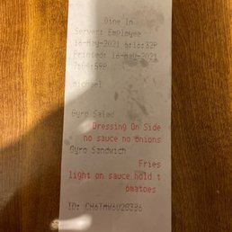 I was told it would be 5 minutes to receive my gyro salad. It was 3 minutes maximum! The amount of gyro meat was many times more than I expected, & it was delicious. Plenty of vinaigrette, certainly housemade tatziki sauce, & veggies. This will be 2 or 3 meals for sure.
